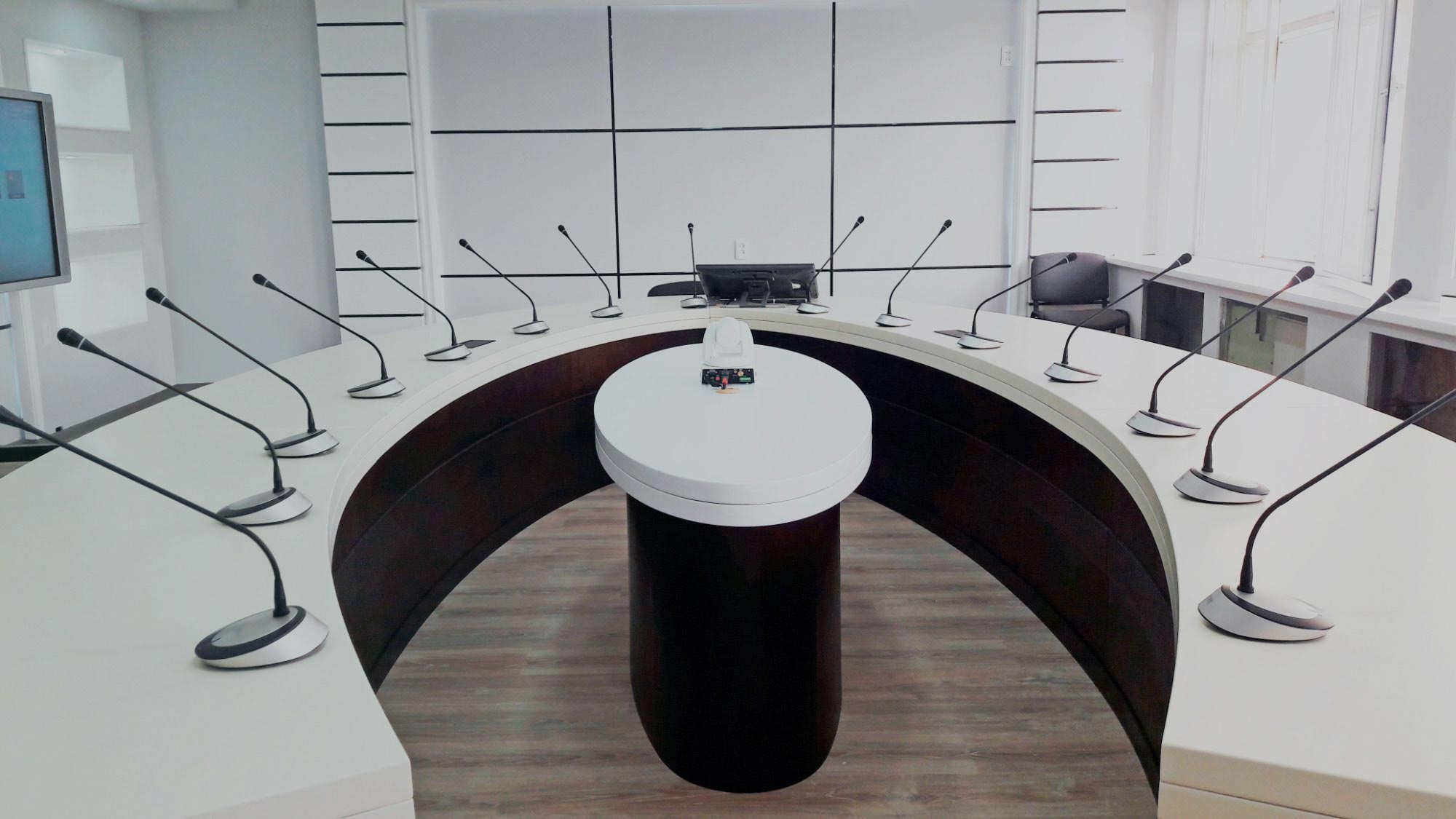 Sistema digital de gestión de reuniones compuesto por micrófonos de alta calidad, altavoces que garantizan inteligibilidad perfecta en el audio con tecnología especializada que hace al sistema inmune a la interferencia de los teléfonos móviles, módulos de votación electrónica e identificación biométrica, sistemas de almacenamiento y potentes interfaces de software fáciles de usar.
